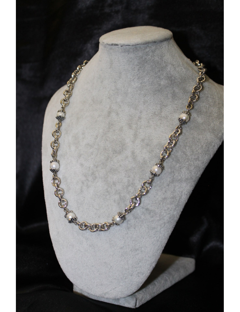 Collana mini drops argento e perle cm 46