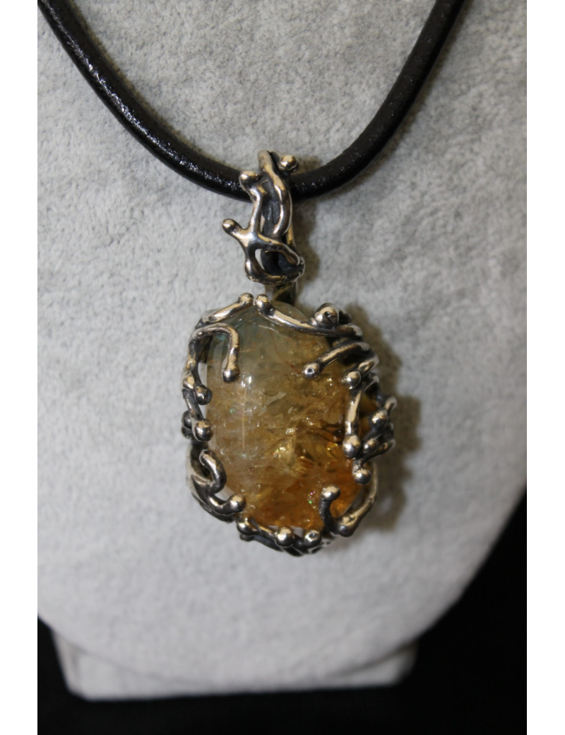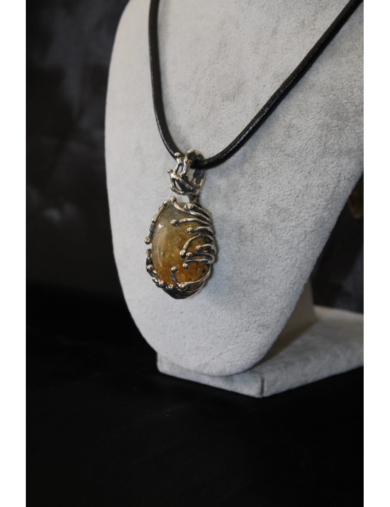Collana in cuoio con ciondolo di citrina e argento