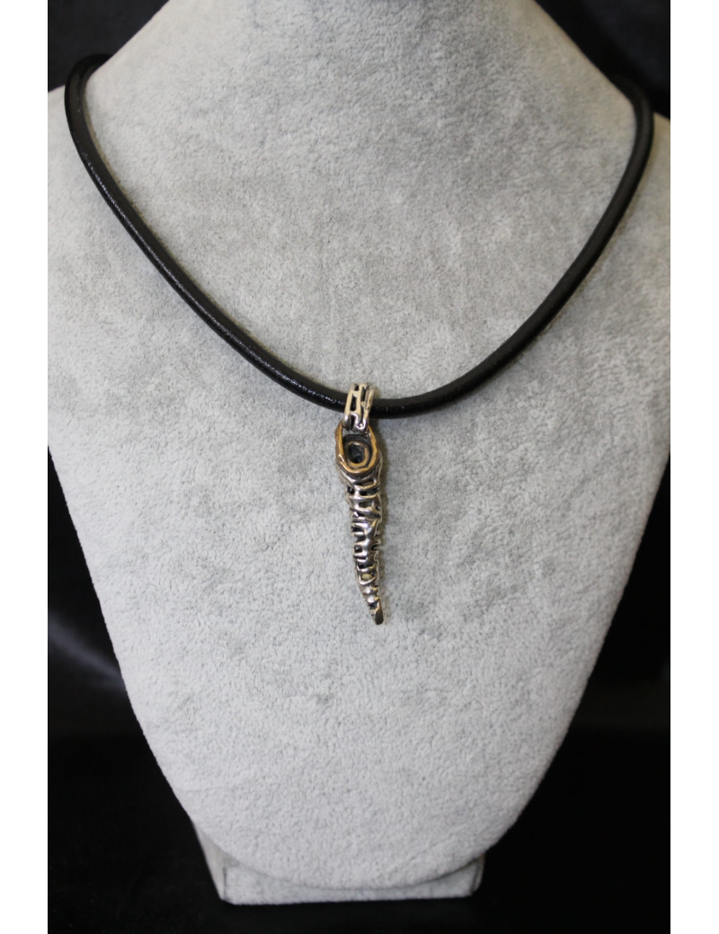 Collana in cuoio con corno in argento