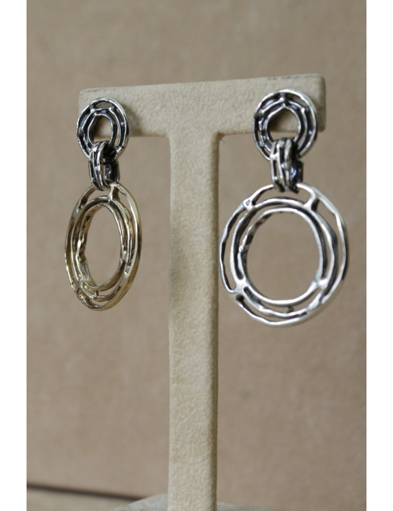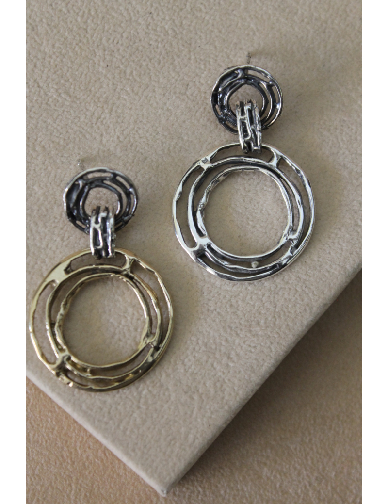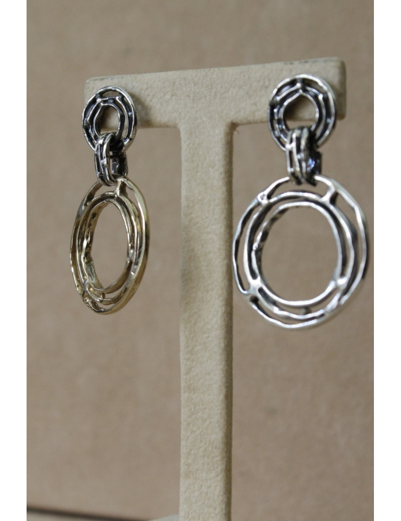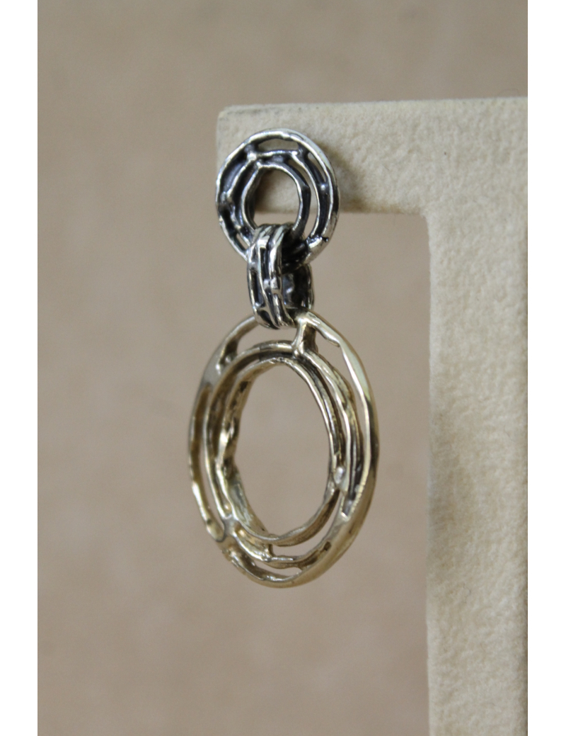 Orecchini cerchi e fili in argento e bronzo