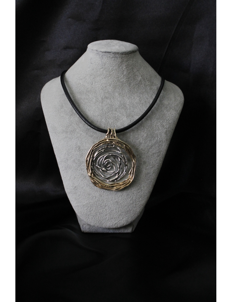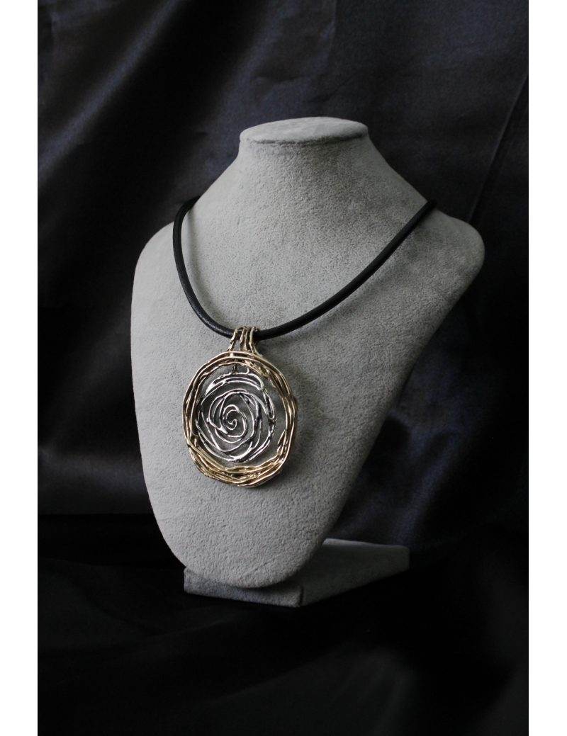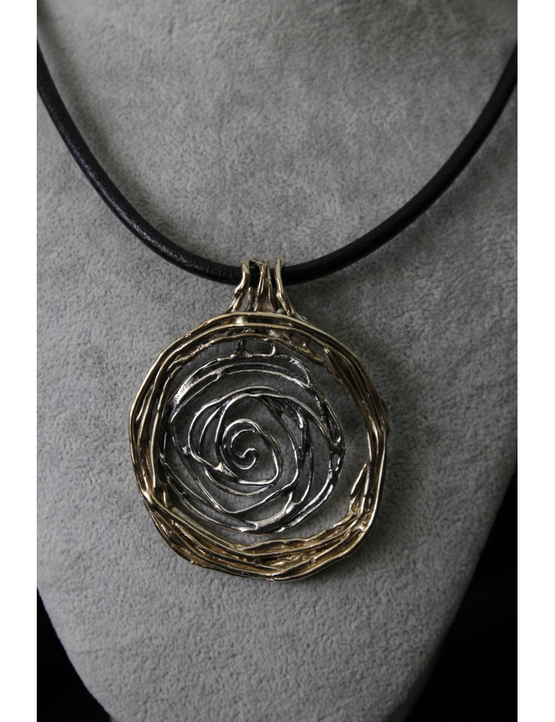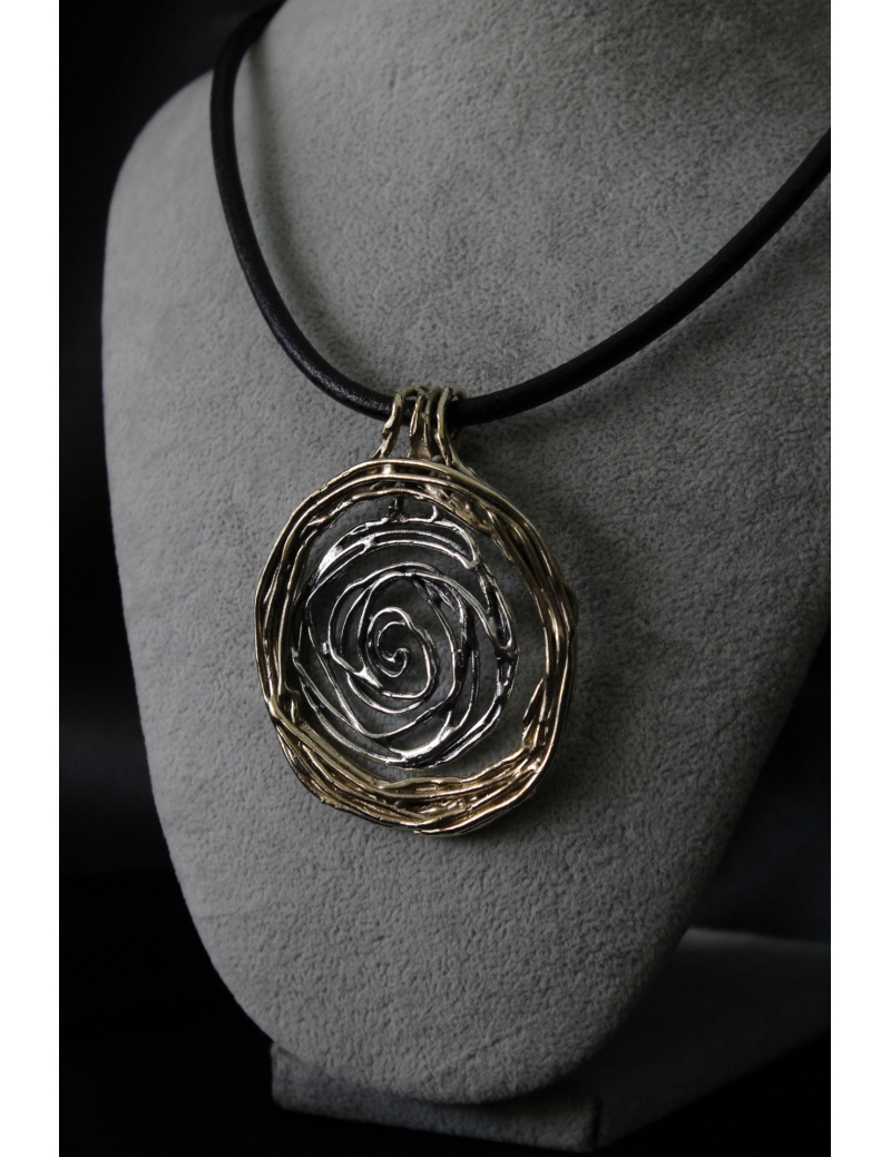 Collana con ciondolo spirale grande in argento e bronzo